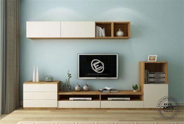 吊柜與地柜組合的電視柜樣式多變,實用與美觀兼?zhèn)?,錯落有致的吊柜與地柜組合是小戶型非常好的選擇,比單一的地柜收納空間增加更多,也能作為電視背景墻的裝飾之一。目前不少消費者傾向組合電視柜。